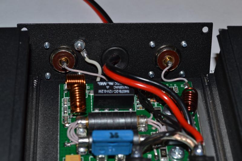 Транзисторы применены типа IRF520 или подобные. Смещение на тразисторы подаётся общее, поэтому о "красоте" выходного сигнала говорить не приходится (врядли транзисторы подбираются, максимум это экземпляры из одной партии). Что положительно отличает Воронежский усилитель от подобных итальянских, дак это наличие ФНЧ на выходе.