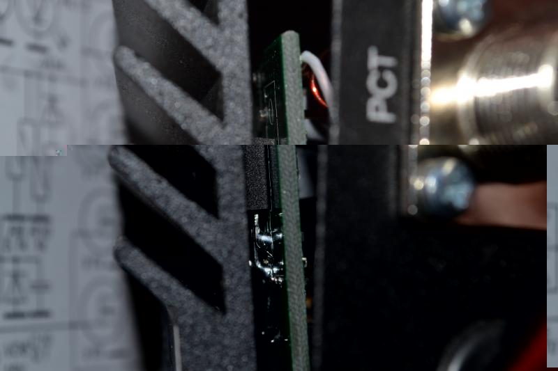 Возникла необходимость уменьшить чувствительность схемы включения усилителя, заодно сделал несколько фотографий внутренностей зверька.