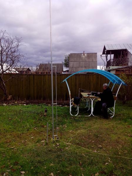 Высота точки запитки примерно 1,5м, радиалы не прижимаются к земле и идут чуть под наклоном.