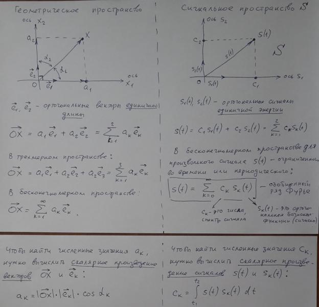 Если внимательно присмотреться внизу второго листа к формуле тригонометрического вида комплексной огибающей и сравнить ее с теми сигналами, что выдает квадратурный демодулятор, то мы увидим, что на его выходе как раз присутствуют две компоненты К.О. - действительная и мнимая. С точностью до константы 1/2.