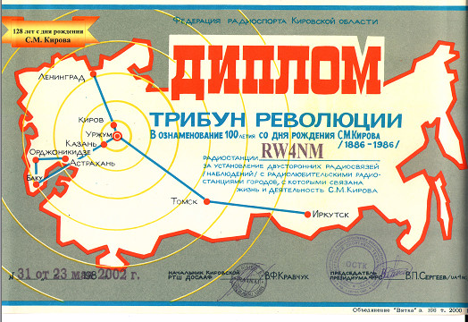 В 1986 году в СССР отмечали 100-летний юбилей С.Кирова. В некоторых областях, где служил и работал Киров, были организованы радиоэкспедиции по памятным местам.