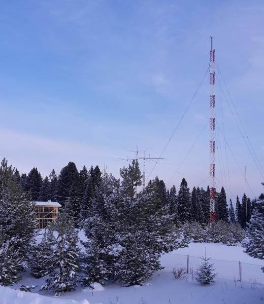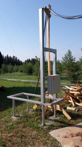 Для того, чтобы модель электрически перенести один в один на железо, я буду перед монтажом на траверсу каждый элемент по отдельности настраивать на ту резонансную частоту, которую он бы имел на рабочей высоте 50 метров. Процедура настройки будет выполняться на высоте 5,5 метров, для нее построена специальная вышка, см. фото.