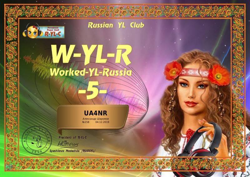 Диплом от Российского YL клуба/ R-YL-C/: