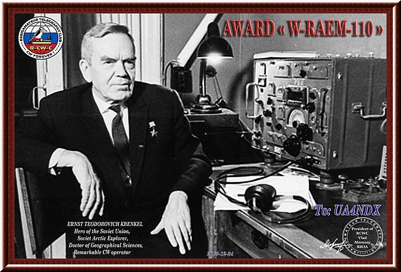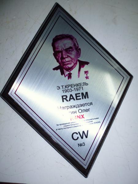 Получил седни очередную плакетку за RAEM-110 CW № 212....