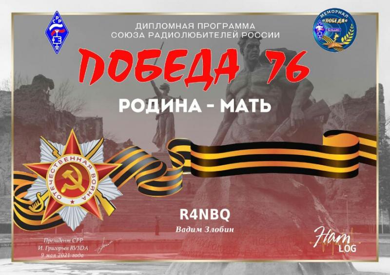 Оставлю свой небольшой отзыв о мемориале "ПОБЕДА". Участвовал в мемориале первый раз. Работать начал с 3 мая. Аппаратура трансивер YAESU FT-100D(100Вт), Т-тюнер самодельный, антенна диполь 80м, растянут между двумя десятиэтажными домами. Первый день работы был продуктивным. Станций было много, толпа вызывающих, все на перебой, в эфире хаос! Но меня это только раззадоривало)) Микрофон в руки, кричу свой позывной, пробиться не просто!!! Некоторые станции приходилось звать по полчаса и более. Пару часов работы в эфире и я освоил некоторые приемы и уловки. Далее связи шли веселее, отвечали, если не сразу, то на второй-третий раз. Рапорта хорошие 5 9+. В первый вечер сделал около 30 связей на 20 и 80м. Уточню, работал в SSB микрофоном, в цифре не работал. В остальные дни работал пару часов утром и пару вечером, с переменным успехом. Получил несколько дипломов. Жаль не хватило ровно одной связи на диплом "Города-Герои", хотя связей было проведено достаточно, но по какой-то причине они не появились на HAMlog. Полученные дипломы приложу во вложении к посту.