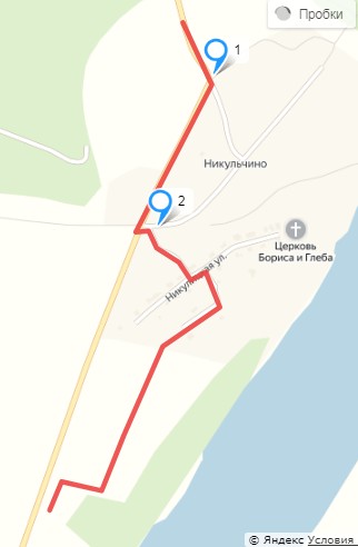 Здесь, по пути на слёт, можно приобщиться к древней истории освоения Вятского края новгородцами. На карте обозначен храм Бориса и Глеба. Это новая деревянная постройка начала 2000 годов на месте разрушенного каменного храма. Развалины старого храма сохранились, на этом месте выросла еловая роща. Новый храм построен жительницей села, предпринимателем Бронниковой Ольгой Леонидовной.