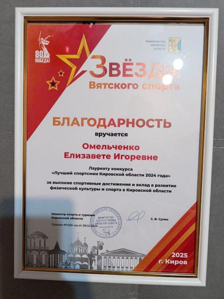 04 марта 205 года состоялась торжественная церемония вручения наград "Звезды Вятского спорта 2024 года"