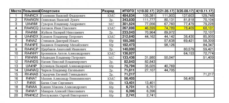 ИТОГИ Кубка по радиосвязи на УКВ Кировской области 2017 года.