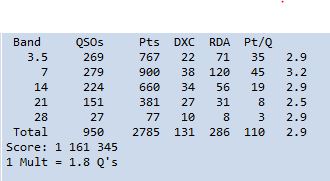 Из 944 qso зачлись 910. Итог 7 место в подгруппе из 24 станций.