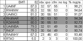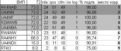13.5. В случае равенства результатов более высокое место присуждается участнику, у которого выше отношение количества подтвердившихся радиосвязей к количеству заявленных.