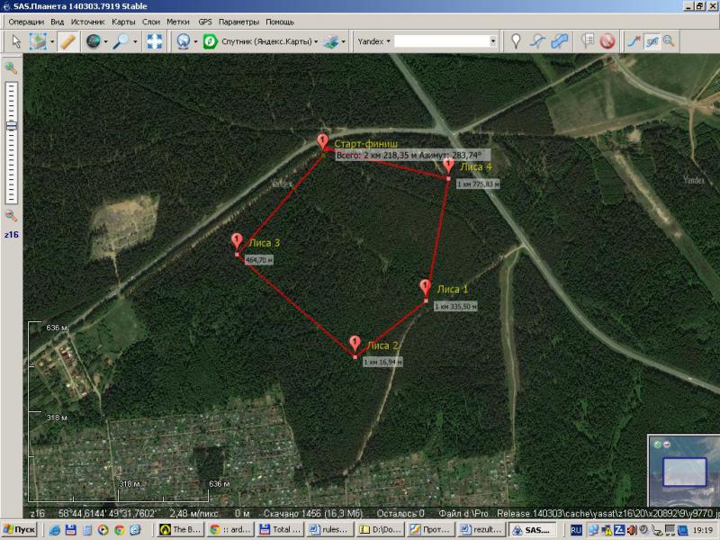 На карту вынесены метки расположения "лис" и точка "старт-финиш"