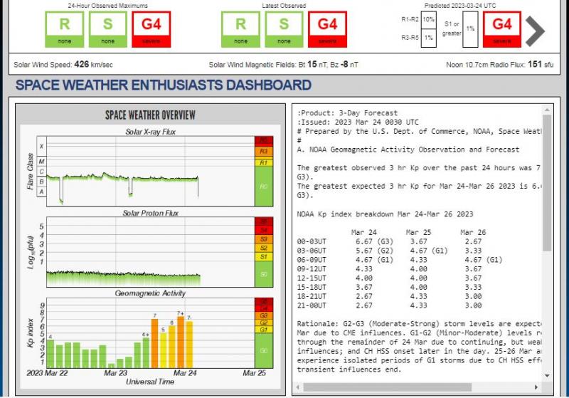 Но а утром связи шли на "ура" - эфир чище ночного в разы (нет света и рекламы) Маяк слышали до Волгограда, всё утро, у меня он затих только в 9 утра, когда вся "шапка" уехала в Канаду... Повтора 24-го после обеда уже не было, хотя энергетика ещё держалась...Использую для контроля обстановки много сайтов одновременно ( ссылки давал ранее) но появился новый, в котором необходимые данные на одной странице, запомните его в "закладках" ? Вот здесь, обновлять станицу : https://www.skyandsolar.com/aurora-forecast Приличного видео в инете не нашёл, но видели сияние до Белгорода... 73!