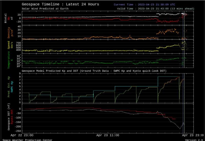 Началось рано, в 4 утра , случайно не спал- UA9FPG только и ответил. Днём почти с 12 мск началась вновь (по маяку, естественно заметили ) Моща шапки достигала 135 Gw , Кр индекс почти весь день был 6-7 = большая редкость ! Скорость солнечного ветра доходила до 830 км/ сек! Пока это самая сильная в этом 2023 году. Ещё многие наши работали в ней, поделитесь пожалуйста ? 73!