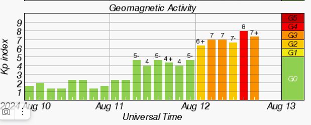 12 августа случилась весьма мощная аврора (нас даже "накрывало" , терялся сигнал маяка и станций....) Провел десяток рядовых связей ,но парочку новеньких, с востока :