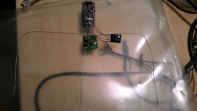 Собственно, опробовал антенну на 433 МГц, в руке папка с прототипом "balloon beacon" на FS1000