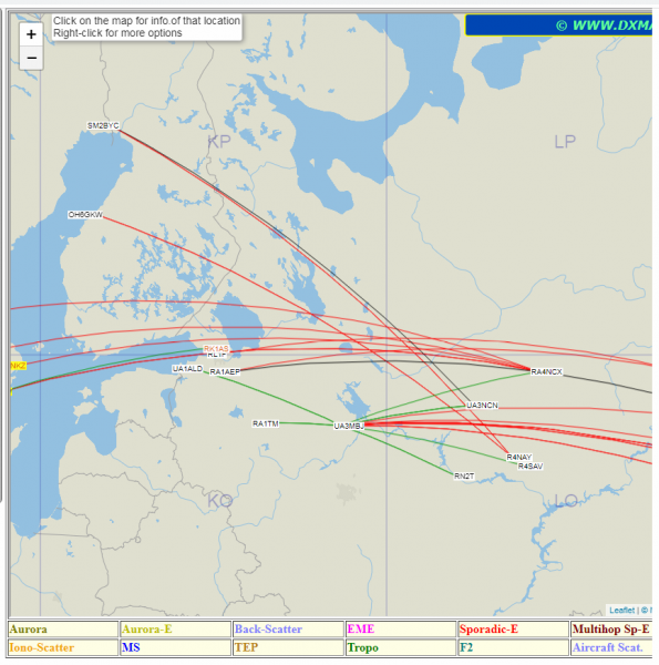 <<< RA4NCX 144174.0 OK6DX [EU] European Russia via ES, 2400km 19:11z >>> К сожалению на карту DXMAPS - не попал, но обстановка была такая до его связи : Изображение