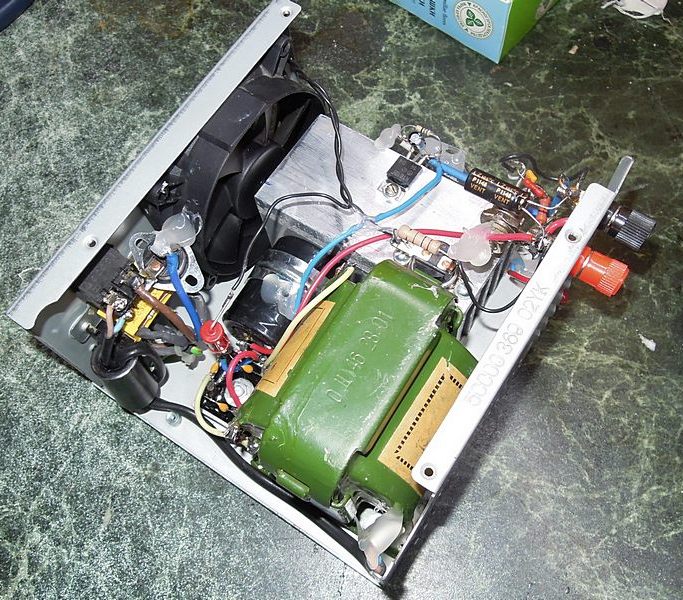 Перед новым годом большой спрос на слабенькие, но "чистые" блоки питания, не импульсные.. (для СИ-БИ радиостанций, трансиверов типа FT-817 , и т.п.) В корпус от комп. блока питания влазит на ток не более 3-4 ампер...(кратковременно-до 5А) Дополнения : Диодный мост обязательно шунтировать 4-мя керамическими конденсаторами 0,1 мкф-для устранения мультипликативного фона 100 гц , по сетевому шнуру обязателен солидный дроссель -ферритовая трубка с несколькими витками этим шнуром. Светодиод надо поискать Русский, красный, АЛ307 , т.к. на современных светодиодах выходное напр. будет больше 14 вольт...И для устранения возбуждения стабилизатора параллельно Э-Б силового транзистора (КТ819Г у меня) ставится небольшой электролитик 10-20 мкф х 10вольт.. Трансформатор у меня ТН-46, обмотки последовательно 5+5+6,3 вольта. На радиаторе установлен термостат-таблетка на +50 С (из Алми) для включения вентилятора. (Общий вес,конечно, большой - 2,8 Кг ,отправлял по почте, т.к.делал "на заказ")