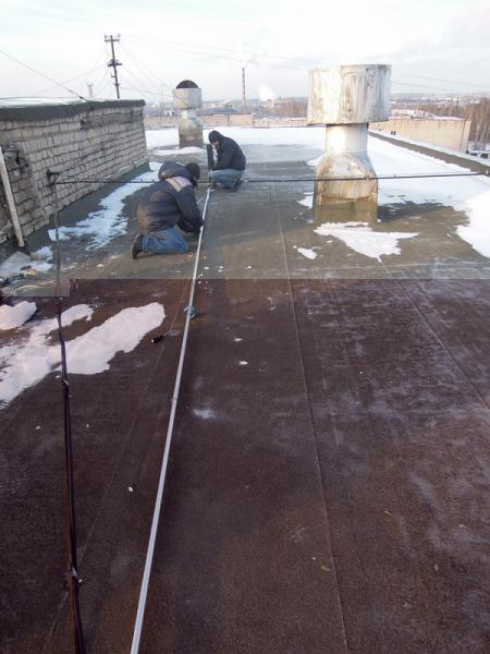 С точки зрения электро- и пожаробезопасности, землю молниезащиты нужно подключать только на крыше. С соблюдением правил проводки молниеотвода.