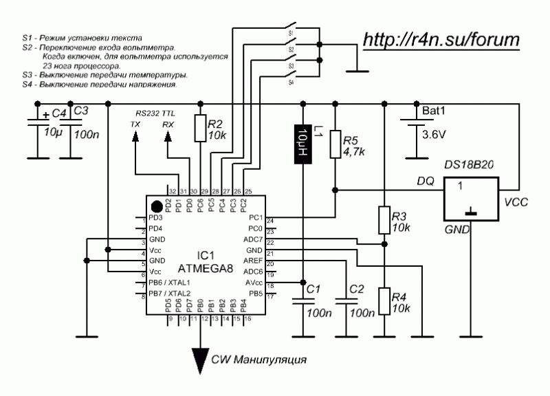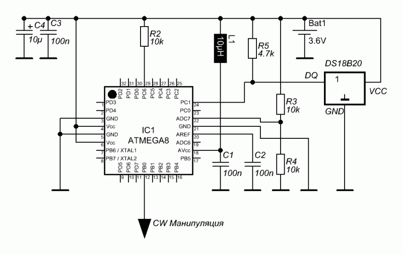 Контроллер телеграфного маяка на ATmega8 + датчик температуры