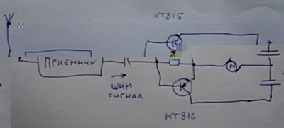 Toni писал(а):Если двигатель нужно вращать только в одном направлении, то можно обойтись и без контроллера заменив его на регулирумый ШИМ генератор например на микросхеме NE555. То есть в схеме передатчика убираем МК, на базу VT2 через R3 подаём ШИМ. На приёмной стороне с выхода приёмника сигнл ШИМ подаём на ключ, через который будет запитываться двигатель.