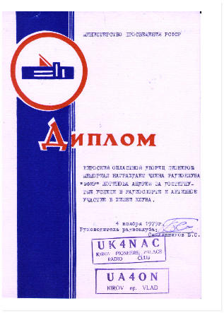На UK4NAC в школьные каникулы проходили соревнования кружковцев по приему-передаче радиограмм. Сами участвовали, сами судили. Участникам давали грамоты.