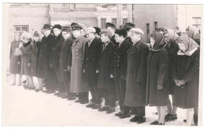 Открытие областных соревнований по скоростному приему и передаче радиограмм. 1966 год (февраль или апрель) во дворе радиоклуба ДОСААФ на Дрелевского, 18.