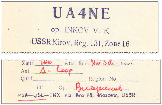 RW4NM писал(а):Кировский радиоклуб организовал экспедицию на родину Кирова в город Уржум. Для этой цели был получен специальный позывной R4ANK (что было очень непросто в то время).