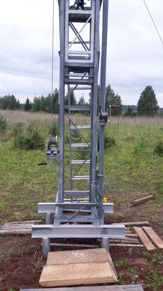 Мачта воронежская секционная Z&L, высота 30 метров. 4 яруса оттяжек, 12 якорей на 4 стороны. Оттяжки трос 6 мм разбиты изоляторами. На двух верхних ярусах дифференциальные лебёдки от Унжи.