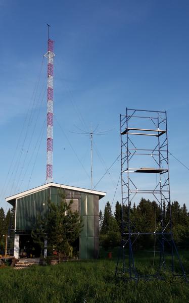 Для того, чтобы модель электрически перенести один в один на железо, я буду перед монтажом на траверсу каждый элемент по отдельности настраивать на ту резонансную частоту, которую он бы имел на рабочей высоте 50 метров. Процедура настройки будет выполняться на высоте 5,5 метров, для нее построена специальная вышка, см. фото.