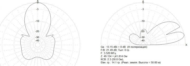 13 дБи - это и так уже приличное усиление -))) А с учетом высокого 40 м берега это будет мечта, а не антенна (но только на восток). На VK-ZL восточном фронте, с учетом высоты берега, диаграммка выглядит так: