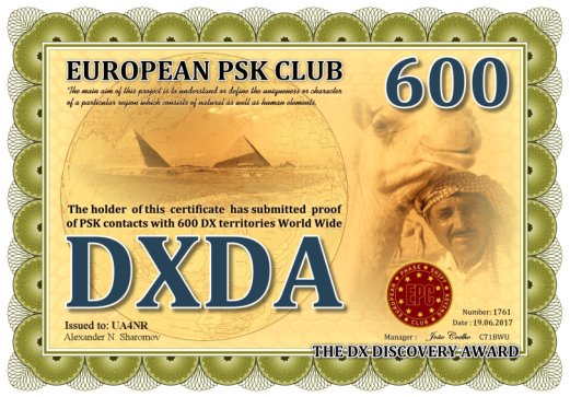 Сегодня Алексей RA4SD любезно прислал мне диплом Аврора 50, ох и нелегко он дался.... Корреспондентов, желающих провести связь с уже имеющимся у них квадратом -немного,в радиусе 1000 км, а именно столько я могу себе дальность позволить...Пришлось и связей 5-7 SSB добавить, и связи за 1979-1981гг...(там ещё проблема с квадратами, они по другому в то время были...) А хотелось чисто телеграфный,но всё равно доволен... 73 УКВ-истам !