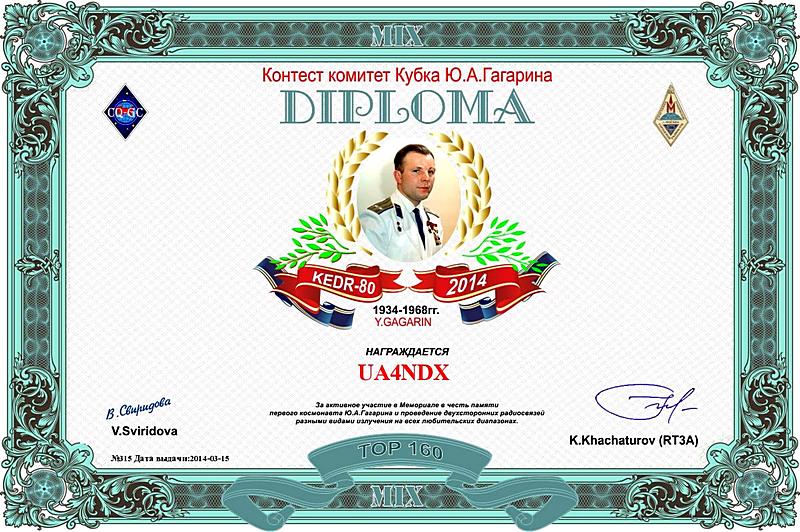 Дипломы в честь 80-летия Ю.А.Гагарина тоже по результатам на сайте выполняются легко! (Скачать выполненные дипломы можно здесь: http://cqham.kz/cqgc/kedr/