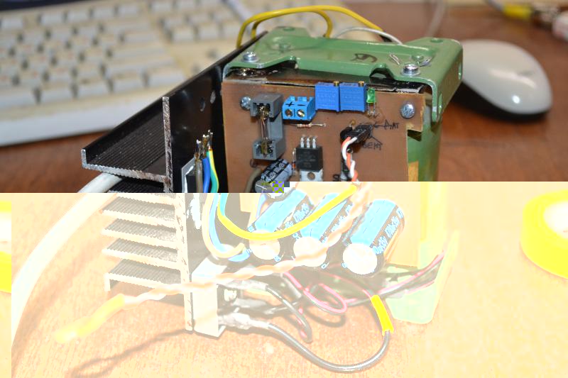 Насчёт моста- если быстро,то лучше поставить тот самый китайский, на 50А, а если советские- КД213А , (держат 100А пуск) собрать их в мостик, и прижать к радиатору пластиковой стороной, сверху-текстолитовую накладку с болтом посередине....А насчёт схемы: давно уже делаем из журнала "Радио" № 2 за 2005-й год, только там керамику надо ВСЮ убрать (это старинная ошибка - керамические конденсаторы в стабилизаторах,ведут к непредсказуемым "возбудам" при разных температурах и нагрузках! ) Вот есть проверенный вариант ,доработанный, повторён 4 раза ,на разные токи. (преимущество схемы- транзистор (105 А !) -на корпусе, без прокладок, и падение напряжения там можно от 1 -го вольта, т.е. Транс может быть на 12 вольт всего,кондер на 16 вольт... 73!