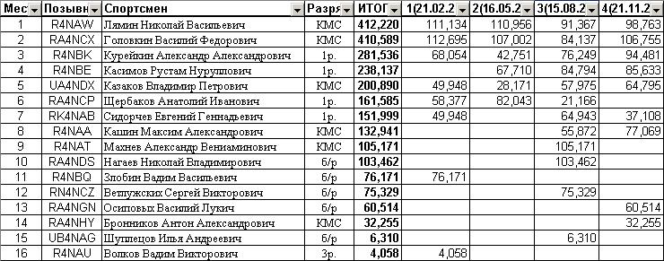 Спасибо R4NAW, нашел ошибку в вычислениях итоговых результатов "Кубок Кировской области по радиосвязи на УКВ 2021 года"