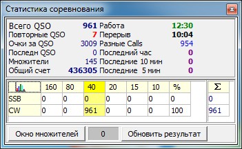 Я работал только телеграфом на 40 м.д. в 1-диапазонном смешанном зачете.