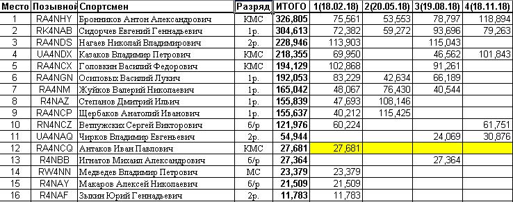 Итоги 4-го этапа кубка по радиосвязи на УКВ, проведенного 18 ноября 2018 года: